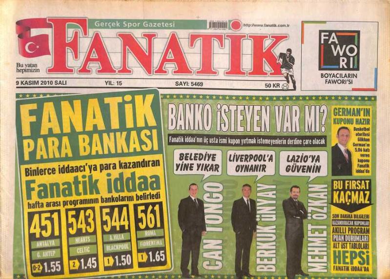 Fanatik Gazetesi 9 Kasım 2010 - Sadri Şener Fanatike Konuştu - Galatasarayda Taşlar Yerinden Oynayacak GZ124480, en son 20 gün önce güncellenmiştir.