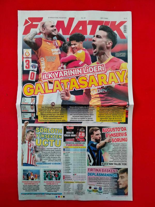 Fanatik Gazetesi - Galatasaray 3-0 Kasımpaşa - 22 Aralık 2025 - Tek Yaprak