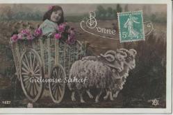 Fantezi Kart: Koyunlu Fayton ve Küçük Kız / Postadan Geçmiş, Pullu ve Damgalı