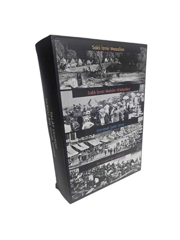 Sabah şerifleriniz hayrolsun!” "Kalimera sas!” "Pariluys!” "Şalom!” Yangınla beraber İzmir’in selamı sabahı söner. Yangın ertesinde İzmir’e masal gelmez, İzmir’den masal gitmez, İzmir masal anlatmaz olur. Masallar yasaklanır, canını kurtaran kaya kovuklarına, taş tanrı dağlarına sığınır saklanır. Sade kaya kovuklarına, taş tanrı mezarlarına kulak verenler duyar olur o masalları, bu "Saklı İzmir Masalları”nı. Güzel İzmir’in, adını çoğumuzun bildiği ama belki de geçmiş hikâyelerini daha önce hiç duymadığı saklı kalmış mekânlarının hikâyeleri, 9 Eylül 1922’de geri alınan fakat 13 Eylül 1922’de alevlere teslim edilen İzmir’de yanan yerlere, yanmayan yerlere, taşınır ve taşınmaz mallara ne olduğunu, bu malların nasıl ele geçirilip nasıl el değiştirildiğini; o günlerin Büyük Millet Meclisi ve İzmir Şehir Meclisi tutanaklarından ve 1922-1934 arasında yayımlanan, özellikle İzmir gazetelerinin haberleri, yazıları ve sair arşiv belgeleri üzerinden birlikte bir hafıza yolculuğuna davet ve Amin Maalouf ‘un ‘Uygarlıkların Batışı’ kitabına yazılmış zarf-sız pulsuz mektuplar. Kutu içeriği: - Saklı İzmir Masalları - Saklı İzmir Mekan Hikayeleri - Ganimet Şehir İzmir - Bir Uygarlığın Çöküşü (Amin Maalouf’a Mektuplar)