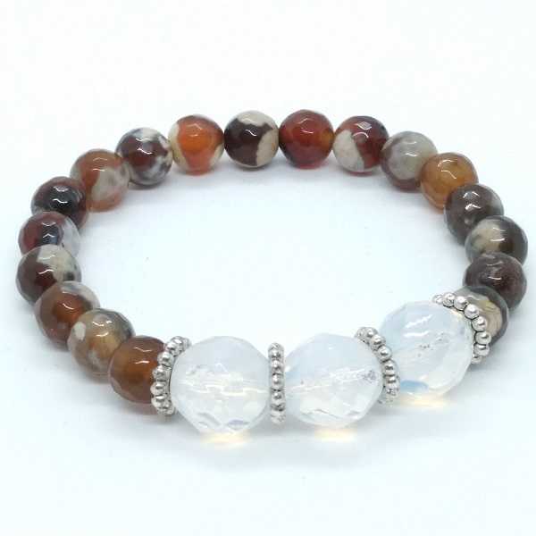 Faset Kesim Doğal Akik ve İri Sıkma Opal Taşlı Tasarım Bileklik - Unisex başlıklı antika/koleksiyon objesinin menşei belirtilmemiştir. 2000 ve sonrası dönemine aittir.