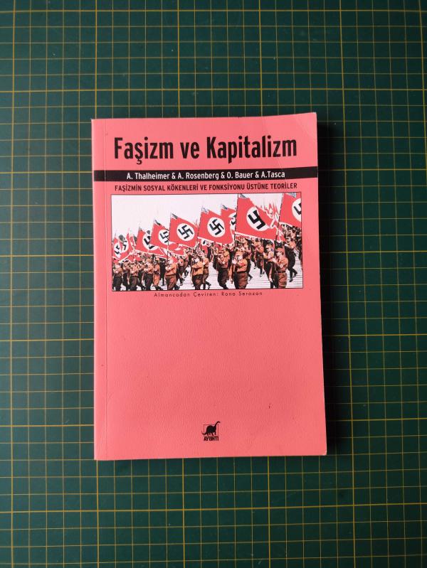 Faşizm ve Kapitalizm (Faşizmin Sosyal Kökenleri ve Fonksiyonu Üstüne Teoriler), August Thalheimer, Auto Bauer, A. Tasca tarafından kaleme alınmıştır. Kitap 2019 yılında Ayrıntı Yayınları tarafından [İstanbul] 9786053142584 ISBN kodu ile yayınlanmıştır. Bu baskının çevirisi Rona Serozan tarafından yapılmıştır. 123 sayfadır. Faşizm ve Kapitalizm (Faşizmin Sosyal Kökenleri ve Fonksiyonu Üstüne Teoriler) adlı eser Türkçe dilindedir.
