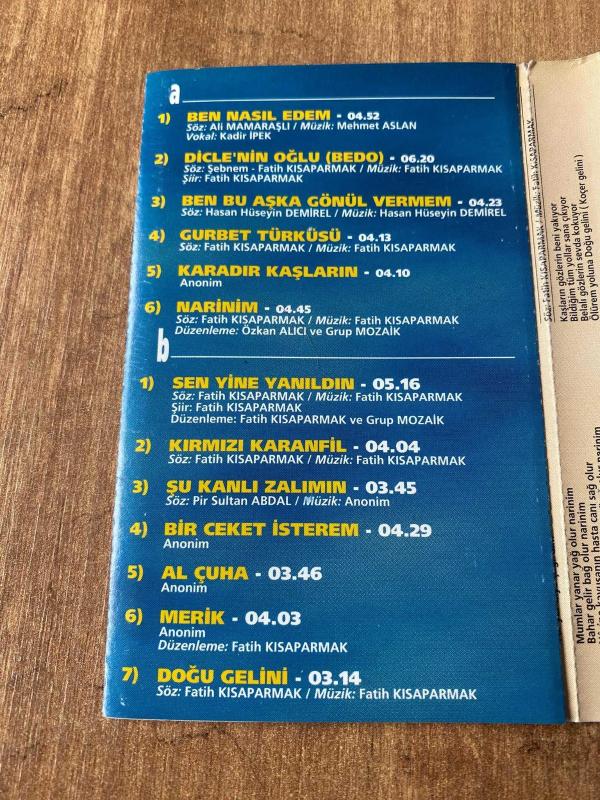 Fatih Kısaparmak - Diclenin Oğlu Kaset başlıklı ürün, Efemera, Müzik, Sinema > Müzik, Plak, Kaset, CD > Müzik Kaseti > Yerli Müzik Kaseti kategorisi altında İkinci El olarak satılmaktadır.