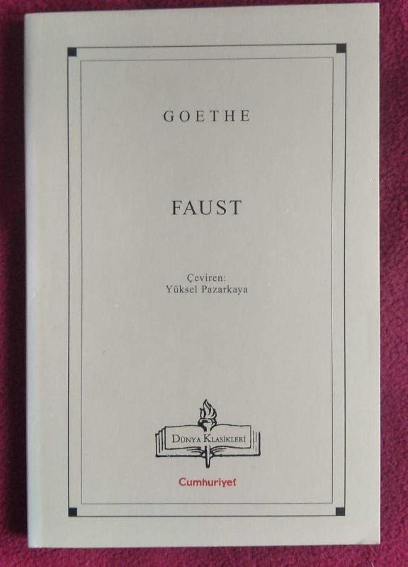 Faust, Goethe tarafından kaleme alınmıştır. Kitap 1999 yılında Cumhuriyet Kitapları tarafından yayınlanmıştır. 112 sayfadır. Faust adlı eser Türkçe dilindedir.