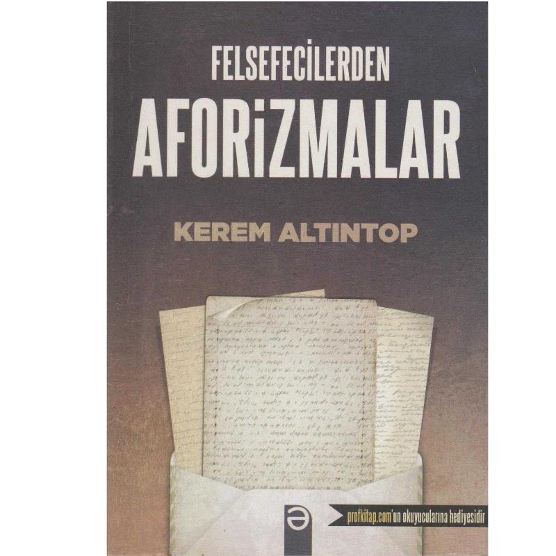 Felsefecilerden Aforizmalar, Kerem Altıntop tarafından kaleme alınmıştır. Kitap 2020 yılında Prof Kitap tarafından [İstanbul] 4962201500118 ISBN kodu ile yayınlanmıştır. Satışta olan kitap, yayınevinin 1. baskısıdır. 112 sayfadır. Felsefecilerden Aforizmalar adlı eser Türkçe dilindedir.