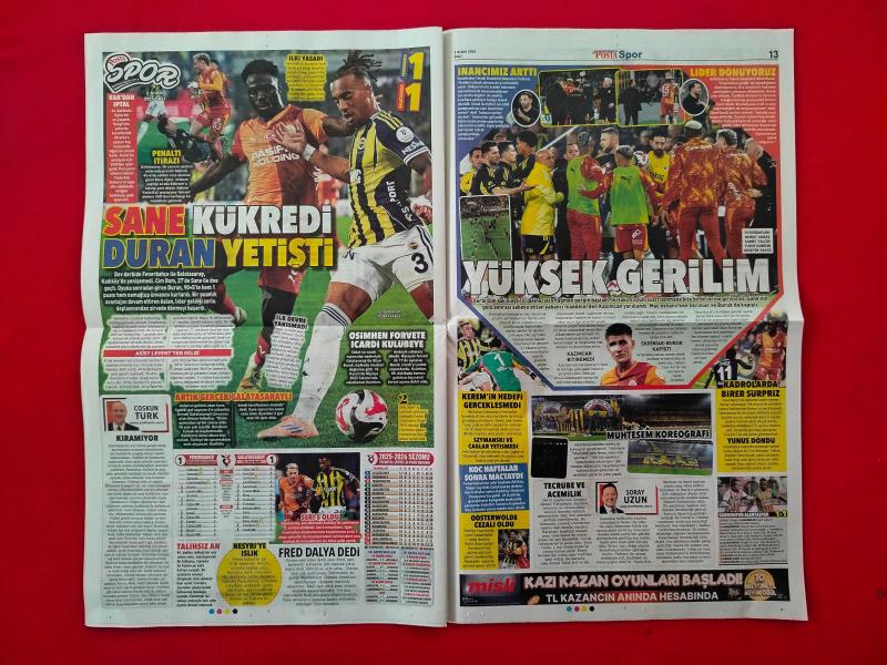Fenerbahçe 1-1 Galatasaray - 2 Aralık 2025 - Posta Gazetesi - Tam Gazete