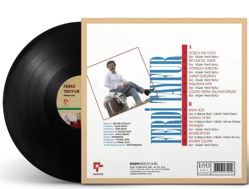 yeni baskıdır 25 Aralık 2025 Ferdi Tayfur PLAK SIFIR JELATİNLİ AMBALAJINDADIR Yurtiçi kargo ile gönderilecektir. Plak A Yüzü: Hoşça Kal Leyla Söz - Müzik: Ferdi Tayfur Bir Mucize Yarat Söz - Müzik: Ferdi Tayfur Döndüm Durdum Söz - Müzik: Ferdi Tayfur Durup Dururken Söz - Müzik: Ferdi Tayfur Başlamak Niye Söz - Müzik: Ferdi Tayfur Çiçekli Fistan (Allanıyorsun) Söz - Müzik: Ferdi Tayfur Plak B Yüzü: Bana Sor Söz: A. Selçuk İlkan / Müzik: Sait Büyükçınar Hatıran Yeter Söz: A. Selçuk İlkan / Müzik: Yılmaz Tatlıses Yanmışım Söz - Müzik: Ferdi Tayfur Sevebilseydin Söz: A. Selçuk İlkan / Müzik: Hakan Kumru Kalbimi Çaldın Söz - Müzik: Ferdi Tayfur Ferdi Tayfur’un Efsane Albümü “Hoşça Kal” 35 Yıl Sonra, İlk Kez Plak Formatında Dinleyiciyle Buluşuyor Türk müziğinin unutulmaz isimlerinden Ferdi Tayfur’un, 1990 yılında yayımlanan ve yıllar boyunca hafızalardaki yerini koruyan albümü “Hoşça Kal”, Ferdifon Plakçılık etiketiyle ilk kez plak formatında müzikseverlerle buluşuyor. Ferdi Tayfur’un besteci ve yorumcu kimliğini en yalın ve güçlü haliyle yansıtan eserleri bir araya getiren bu albümde, sözleri A. Selçuk İlkan, müziği Sait Büyükçınar imzası taşıyan “Bana Sor” ile yine İlkan’ın sözlerini yazdığı, bestesi Yılmaz Tatlıses’e ait olan “Hatıran Yeter”, plağın öne çıkan parçaları arasında yer alıyor. Albüme adını veren “Hoşça Kal Leyla” başta olmak üzere birçok şarkının söz ve müziği ise Ferdi Tayfur’un imzasını taşıyor. Yapımcılığını Nilüfer Gözalıcı’nın, prodüktörlüğünü Ferdi Tayfur’un üstlendiği albümün yönetmen koltuğunda Özer Şenay yer alıyor. Süpervizörlüğünü A. Selçuk İlkan’ın yaptığı çalışmada; tonmaister olarak Tanju Arıkan, stüdyo olarak Marşandiz, LP mastering’de Kemal Alvo, fotoğraflarda Orhan Çetin ve grafik reprodüksiyonda Zafer Başaran imzası bulunuyor. Yüksek ses kalitesiyle, orijinal kayıtlarına sadık kalınarak hazırlanan ve 180 gram ağırlığında üretilen “Hoşça Kal” plağı, tüm satış noktalarında ve online marketlerde müzikseverlere sunulmaktadır.