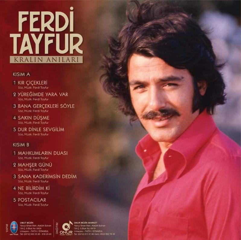 Ferdi Tayfur PLAK Yeni Baskıdır 1.Kır Çiçekleri 2. Yüreğimde Yara Var 3. Bana Gerçekleri Söyle 4. Sakın Düşme 5. Dur Dinle Sevgilim 6. Mahkumların Duası 7. Mahşer Günü 8. Sana Kaderimsin Dedim 9. Ne Bilirdim ki 10. Postacılar SIFIR JELATİNLİ AMBALAJINDADIR Ptt kargo ile gönderilecektir.