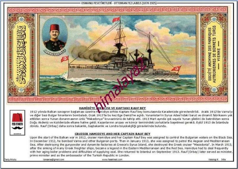 Fes Etiket Panosu, Türkçe ve İngilizce, HAMİDİYE ZIRHLISI VE KAPTANI RAUF BEY konulu başlıklı antika/koleksiyon objesinin menşei belirtilmemiştir. Objenin ait olduğu dönem bilinmeketedir.