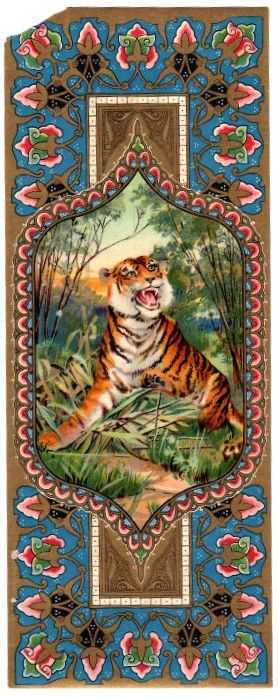 Fes Etiketi, I-4, Ormanda kaplan, mavi zemin, 94x240 mm, Kondisyon 8,5-10, Gerçek=Orijinal, en son dün güncellenmiştir.