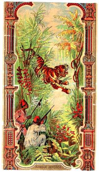 Fes Etiketi, I-6b, Kaplan ve iki avcı, kesik etiket ,107x188 mm, Kondisyon 5-10, Gerçek=Orijinal, en son 10 saat önce güncellenmiştir.