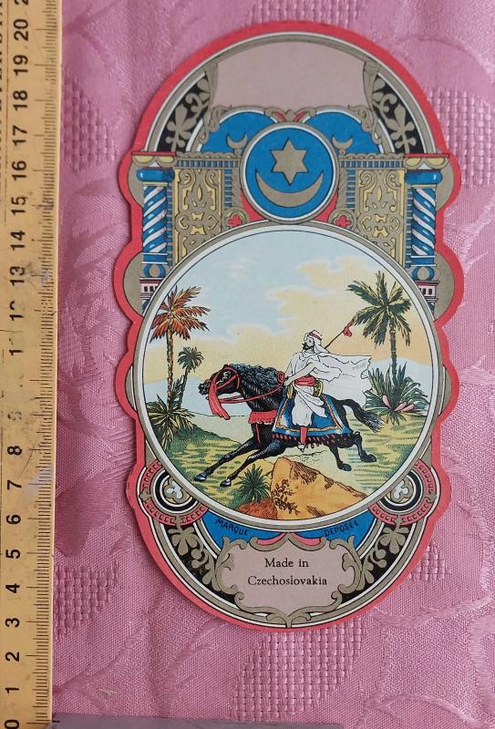 Osmanlı’nın son döneminden Cumhuriyet’in ilk yıllarına kadar, fes, sabun, kolonya, tütün, puro ve şekerleme gibi ürünlerin kutularının üzerine yapıştırılan süslü etiketlere “fes etiketi” denir. Bu ad, genellikle üzerlerindeki Doğulu figürler, fesli adamlar, minareler, hilal-yıldız motifleri ve oryantalist desenlerden gelir. Üretimin büyük kısmı İstanbul’da değil, Avrupa’da — özellikle Çekoslovakya, Almanya, Fransa ve Belçika’da yapılmıştır. Menşei: Çekoslovakya Yaklaşık dönem: 1900-1915 Kullanım amacı: Fes, tütün veya sabun kutularında dış dekor etiketi Stil: Oryantalist / Osmanlı esintili, litograf baskı Bu örnekteki “Arap süvari” sahnesi, dönemin egzotik “Doğu imgesi” modasına uygun şekilde yapılmış; Avrupa atölyelerinde özellikle Türk ve Arap pazarına yönelik üretilmiş. Üstteki hilal-yıldız figürü, tamamen Osmanlı çağrışımı yaratmak içindir. Başlık: “Oryantalist Fes Etiketi – Made in Czechoslovakia, 1920’ler, Arap Süvari Temalı” Açıklama: 1920–1930 dönemine ait, Çekoslovakya üretimi oryantalist tarzda renkli taş baskı “fes etiketi”. Hilal-yıldız ve Arap süvari figürüyle süslenmiş, döneminde fes, sabun ve tütün kutularında kullanılmıştır. Renkleri canlı, kondisyonu çok iyi durumdadır. Koleksiyonluk özgün baskı. 📏 Ölçü: 18 × 10 cm 🖨️ Renkli taş baskı