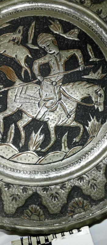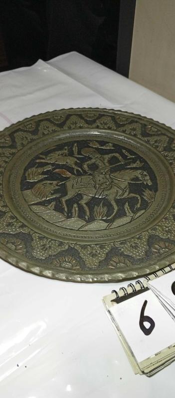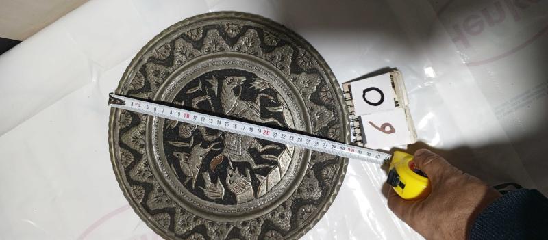 Figürlü Nakkaş İşlemeli Bakır Tabak (30 cm) başlıklı antika/koleksiyon objesi Türkiye menşe’lidir. 1940 sonrası dönemine aittir.