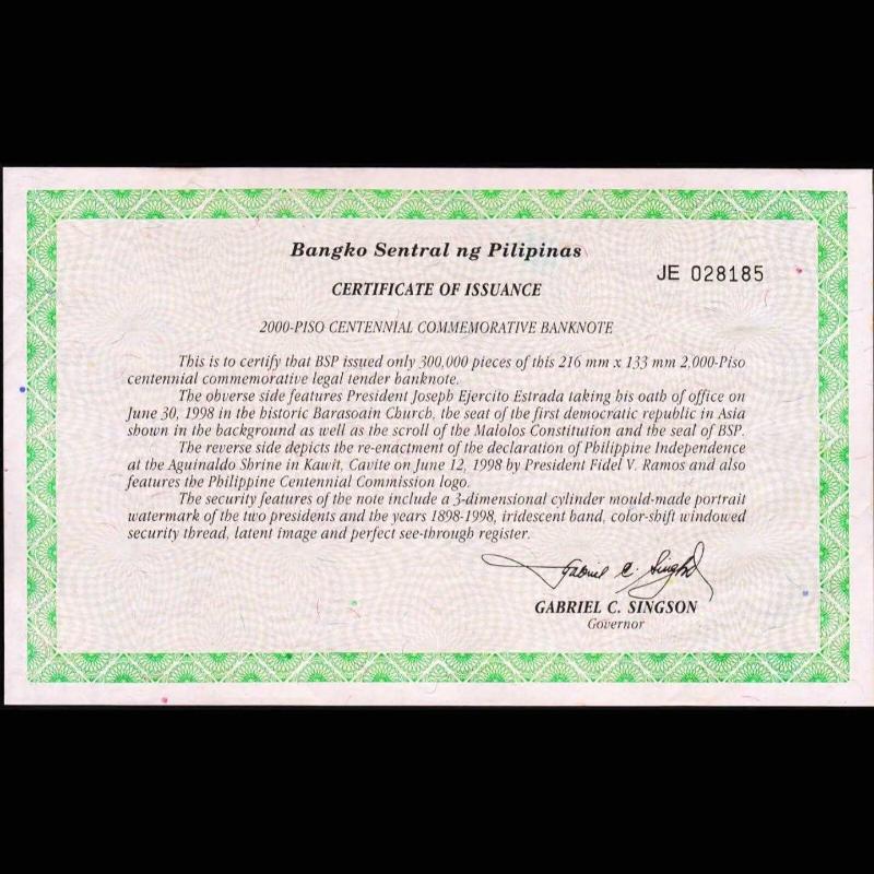 Filipinler 2000 piso 1998 Çil / Dev boy Hatıra banknot Sertifikalı özel föyünde, 9 gün önce satışa sunulmuştur.