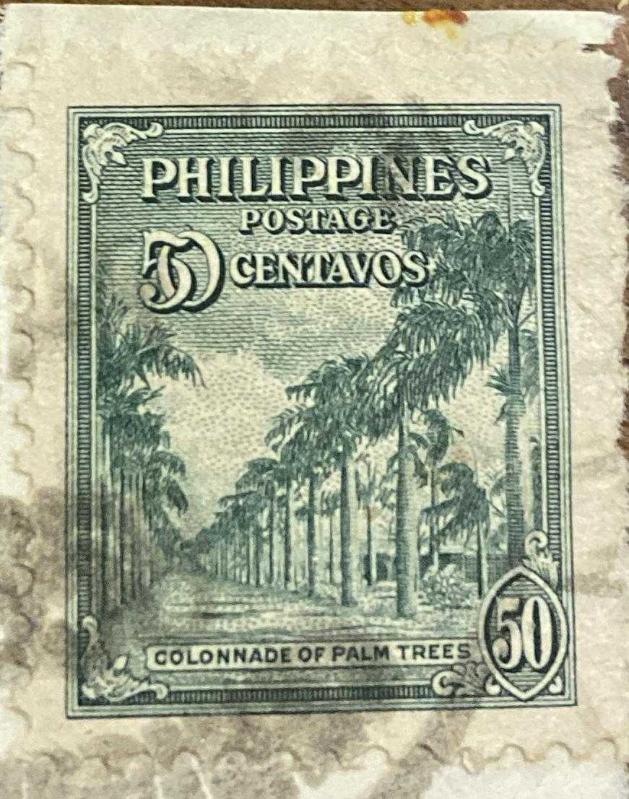 Filipinler Pulu - Philippines Stamp - Mektup Zarfından Kesilmiş / Postadan Geçmiş Pul Filateli - DAMGALI - COLONNADE PALMİYE AĞAÇLARI TEMALI PUL , 50 PARA - YABANCI PULLAR- NOSTALJİK DOĞUM GÜNÜ HEDİYESİ