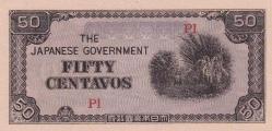 Filipinler, WWII Japon İşgali, 50 Centavo (1942) Eski Yabancı Kağıt Para