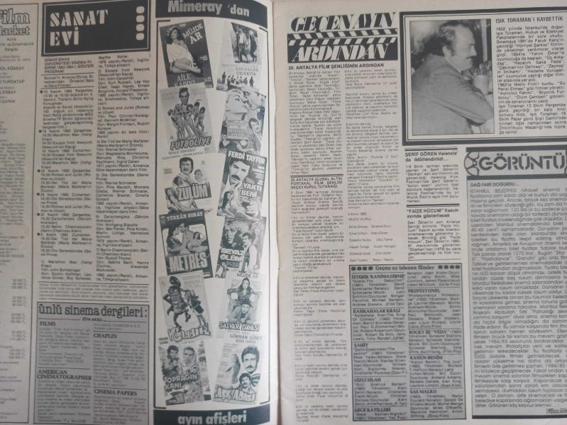 Film Market Aylık Filmcilik ve Sinemacılık Dergisi - Kasım 1983 - Yaktı Beni Filmi - Ferdi Tayfur - Serpil Çakmaklı - Hülya Koçyiğit - Seni Seviyorum Filmi - Türkan Şoray - Cihan Ünal - Sanat Evi - Geçen Ayın Ardından - Işık Toraman - Görüntü - Kılıbık Filmi - Kemal Sunal - Nevra Serezli - Ali Şen - Sümer Tilmaç - Günay Girik - Sokaktan Gelen Kadın filmi - Ömrümün Tek Gecesi Filmi - Not Defterimden - Hayri Caner - Atatürk ve Sinema - Müjde Ar 2 Filmde de Başrolde - Şalvar Davası Filmi - Aile Kadını filmi - İstanbul'daki Video Kulüpleri - Film Müzik Üretim Limited Şirketi ve Çekim Stüdyoları - Elektronik Kaş Şablon Tekniği - Video Anketi - Yeni Video Yapımları - Beni Unutma Filmi - Sokaktan Gelen Kadın filmi - Futboliye filmi - Tomruk Filmi - Doktor Civanım Filmi - Yalan filmi - Aşk Adası Filmi - Gökhan Güney - Seda Sayan - Toprağın Kanı Filmi - Mehmet Şahin - Güngör Bayrak - Şalvar Davası Filmi - Müjde Ar - Futboliye Filmi - Aydemir Akbaş - Bahar Öztan - İbrahim Tatlıses - Dünyadan - Vecdi Sayar - Sean Connery - Nathalie Wood - Box Office - Necla Nazır - Pembe Mutlu - Mahmut Cevher fotoğraf ve haberi - Tam Takım Dergi Yıpranma, sararmalar, kupon kesiği ve yırtılmalar zamana bağlı olarak görülebilir