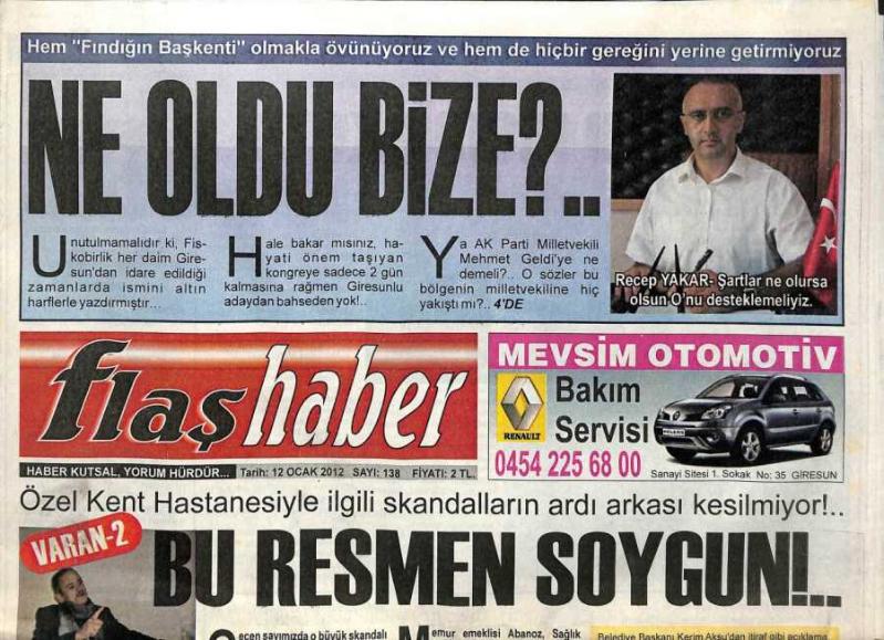 Flaş Haber Gazetesi 12 Ocak 2012 - Özel Kent Hastanesiyle İlgili Skandalların Ardı Arkası Kesilmiyor!... GZ113059, en son 18 gün önce güncellenmiştir.