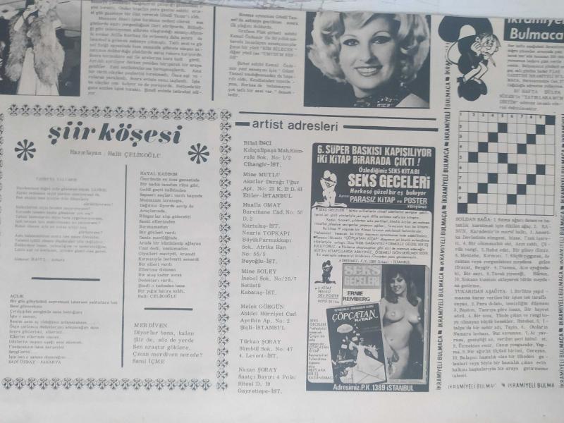 Kitap [İstanbul] yayınlanmıştır. Flaş Haftalık Aktüalite, Sinema ve Magazin Gazetesi - Meral Küçükerol Posteri - 44x30cm boyutundadır - İkramiyeli Bulmaca - Artist Adresleri - Bilal İnci - Mine Mutlu - Mualla Omay - Nesrin Topkapı - Mine Soley - Melek Görgün - Türkan Şoray - Nazan Şoray - Şiir Köşesi - Halit Çelikoğlu - Tek Yaprak Arkalı Önlüdür - Gazete tam değildir sadece poster kısmıdır adlı eser Türkçe dilindedir.