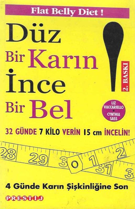 Flat Belly Diet / Düz bir karın ince bir bel / 32 günde 7 kilo verin, 15 cm incelin, Liz Vaccariello - Cynthia Sass tarafından kaleme alınmıştır. Kitap 2010 yılında Prestij Yayınları tarafından [İstanbul] 978-975-6435-50-2 ISBN kodu ile yayınlanmıştır. Bu baskının çevirisi Aylin Vural tarafından yapılmıştır. 301 sayfadır. Flat Belly Diet / Düz bir karın ince bir bel / 32 günde 7 kilo verin, 15 cm incelin adlı eser Türkçe dilindedir.