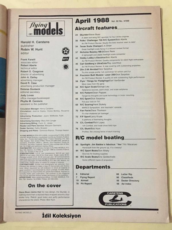 Flying Models Magazine : Air Craft Features - April 1988 - Vintage Magazine - İngilizce Uzaktan Kumandalı Model Uçak Dergisi - Build Steve Buso's Skyrider - Embryo Sport - P39 Aircobra - Space Walker - Aero Pacer - Hawker Hurricane MK II - Flybaby - F4U Corsair