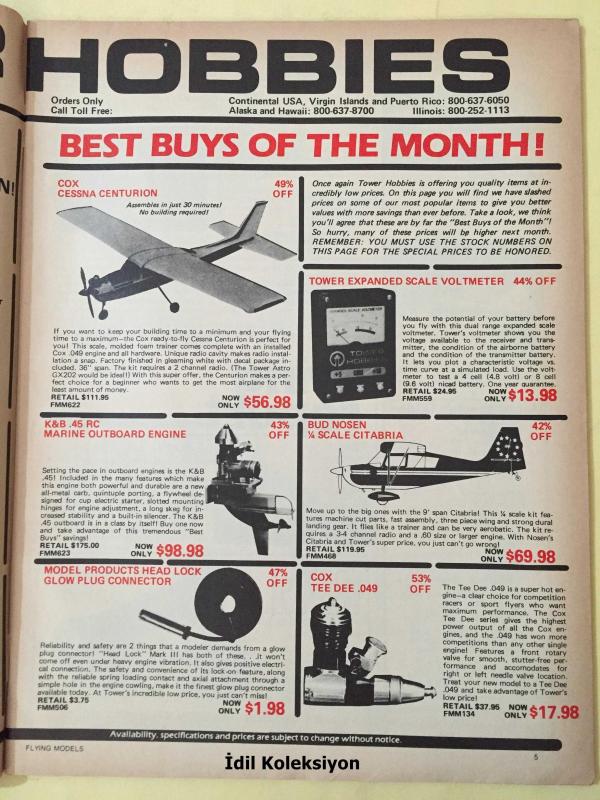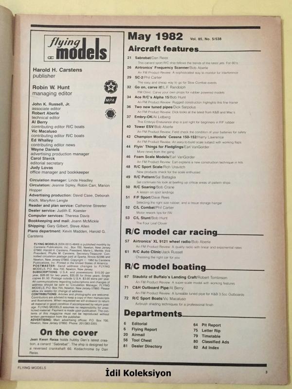 Flying Models Magazine : Air Craft Features - May 1982 - Vintage Magazine - İngilizce Uzaktan Kumandalı Model Uçak Dergisi - R/C Planes , Boats , Cars - How to build SABREBAT - Cox Cessna Centurion - Cox Tee Dee - Bud Nosen Citabria - FS 38 - Star Pro Super Condor - Sterling Sirrus - Cosmic Wind - Typhoon - Micro X