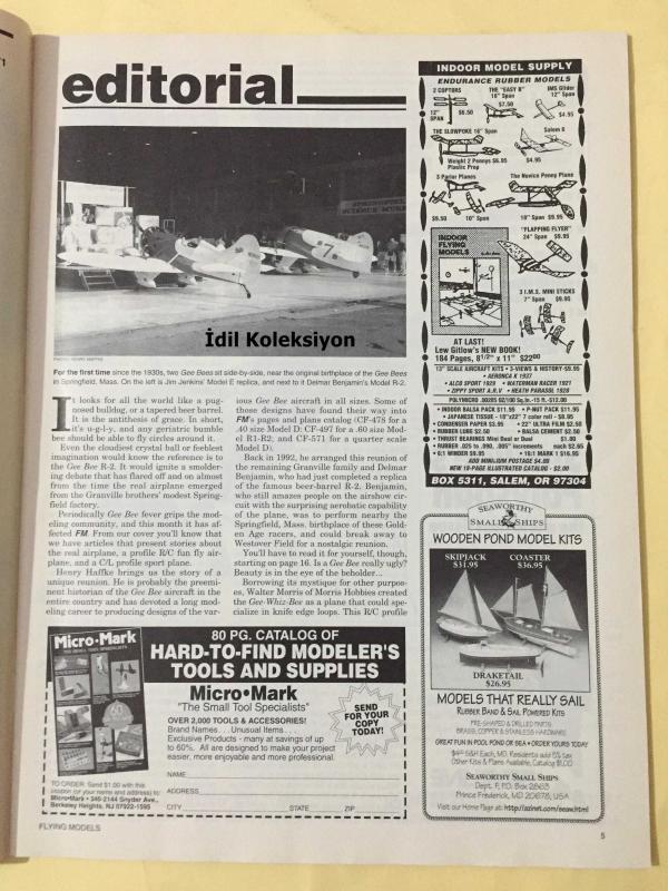 Flying Models Magazine : Air Craft Features - November 1996 - Vintage Magazine - İngilizce Uzaktan Kumandalı Model Uçak Dergisi - Gee Bees - Hog Bipe - Auster MK III - Aika Arf Airplane - Aeronica LB - The Voltmaster - Gee Whiz Bee - JR's XP 783 - P51 Mustang - Hellcat - Messerschmitt 109 - Focke Wulf FW 190
