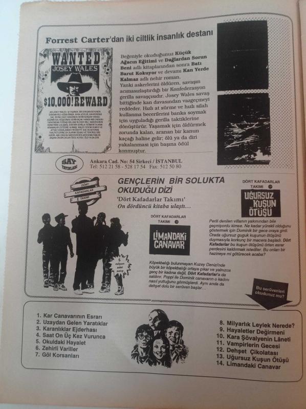 Forrest Carter - Limandaki Canavar- Uğursuz Kuşun Ötüşü - Yasaklardan Kurtulmak İçin - Mehmet Sucu - Halk Bunu Bilmesin - Paul Eluard- Patricia Highsmith- Cumhuriyet Kitap adlı eser Türkçe dilindedir.