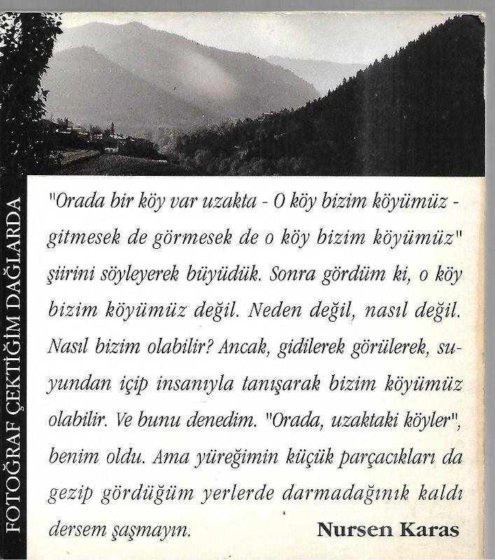 Fotoğraf Çektiğim Dağlarda - İMZALI, Nursen Karas tarafından kaleme alınmıştır. Kitap 1994 yılında Karas Yayınları tarafından [İstanbul] yayınlanmıştır. 176 sayfadır. Fotoğraf Çektiğim Dağlarda - İMZALI adlı eser Türkçe dilindedir.