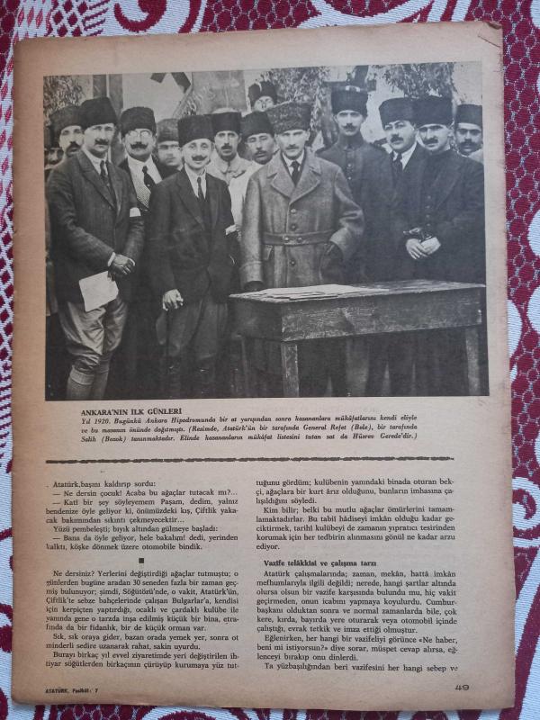 Fotoğraflarla Gazi Mustafa Kemal Atatürk 1920 Ankara Hipodrumunda ,Rus ve Azerbeycan mümessilleri ile,,Konya menüsü Abdülhalim Çelebi ,Dersim aşireti menüsü Diyarbakır Ağa ile,kitap sayfası kupürü 24*34cm, en son 2 yıl önce güncellenmiştir.