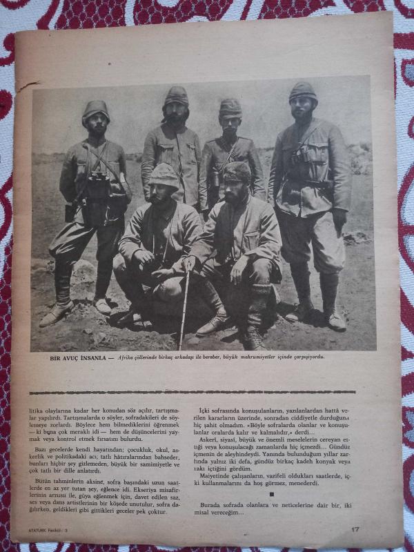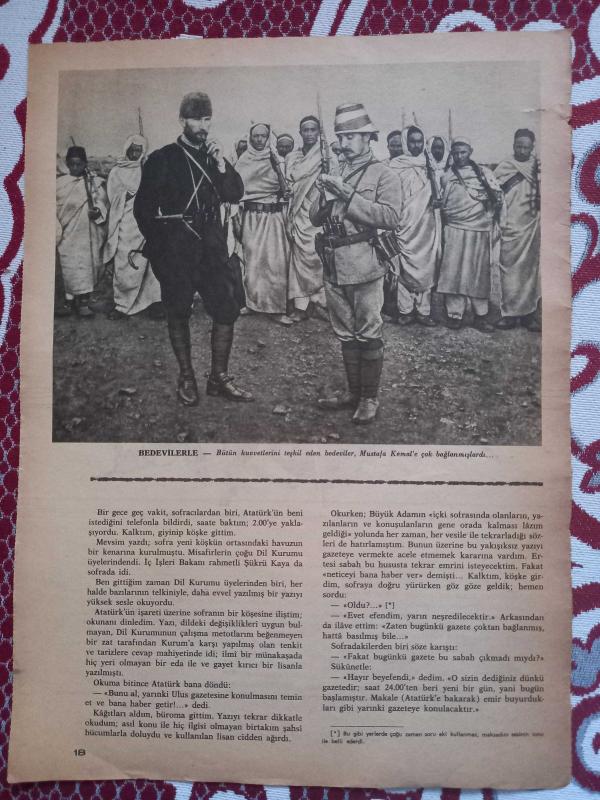 Fotoğraflarla Gazi Mustafa Kemal Atatürk Afrika çöllerinde bedeviler ile 24*34cm kitap sayfası kupürü, 2 yıl önce satışa sunulmuştur.