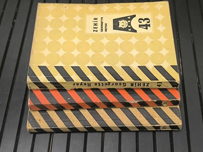 Akba Yayınları’nın klasik cep boy serisinden üç farklı eser bir arada. Frédéric Dard’ın polisiye gerilim türündeki O Bahsettiğin Ölü adlı eseri, serinin dikkat çeken kitaplarından biridir. Olga Rosmanith’in Nofret ve Georgette Heyer’in Zehir adlı romanlarıyla birlikte bu lot, döneminin popüler cep boy roman kültürünü yansıtan güzel bir koleksiyon sunar. Hem nostaljik kapak tasarımları hem de seri bütünlüğü açısından koleksiyonluk ve okunabilir nitelikte bir settir. Kondisyon: Kitaplarda yaşa bağlı belirgin yıpranma mevcuttur. Kapaklarda kirlenme, kenar ve köşe aşınmaları görülmektedir. Sırt kısımlarında ezilme ve yıpranmalar mevcut olup yer yer açılmalar başlamıştır. Sayfalarda sararma vardır ancak metinler okunabilir durumdadır. Zehir adlı kitapta ayrıca ciltte ayrılma mevcuttur. Genel kondisyon orta seviyededir.
