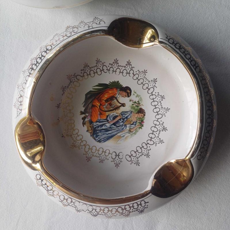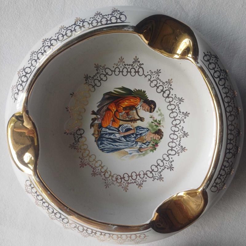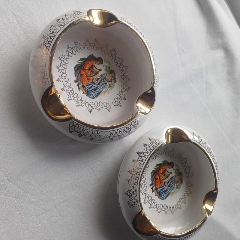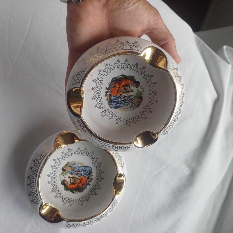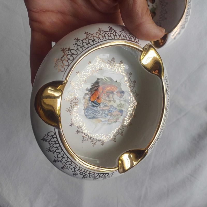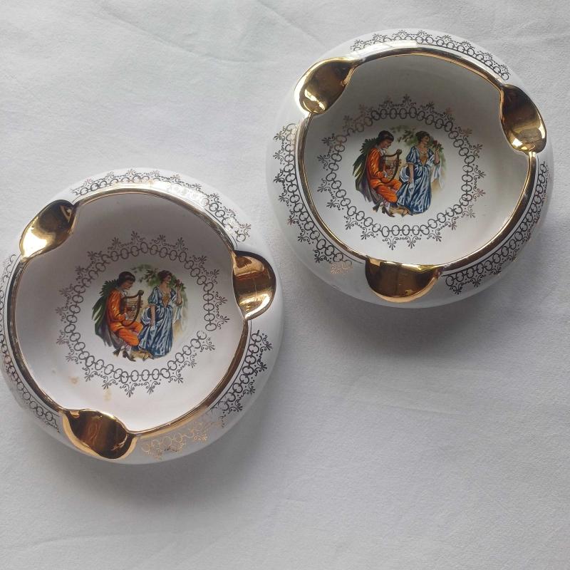 Fragonard Desenli Porselen Kül Tabağı,Altın detaylı ,2 adet başlıklı antika/koleksiyon objesi Avrupa menşe’lidir. 1960-1979 arası dönemine aittir.