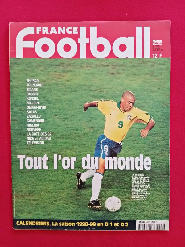 France Football Dergisi - 9 Haziran 1998 - FİFA World Cup - Fransa 1998 Dünya Kupası - Ronaldo, Brezilya, Maldini, İtalya