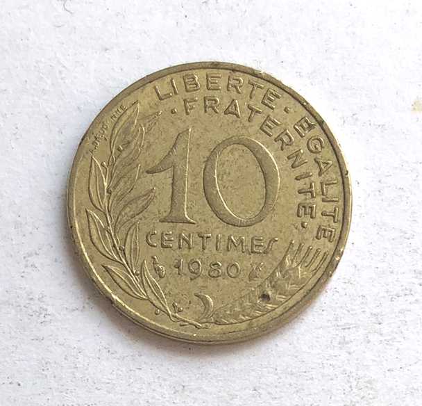 Fransa 10 Centimes 1980. Fotoğraftaki ürün gönderilecektir.