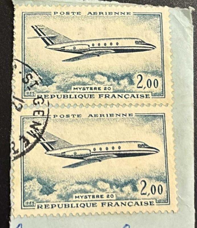 Fransa Pulu - France Stamp - Mektup Zarfından Kesilmiş / Postadan Geçmiş İkili Pul Filateli - UÇAK TEMALI, 2,00 PARA - YABANCI PULLAR, NOSTALJİK DOĞUM GÜNÜ HEDİYESİ, 11 ay önce satışa sunulmuştur.