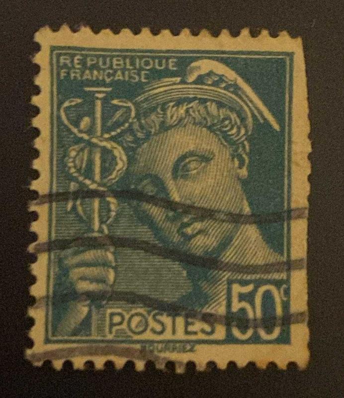 Fransa Pulu - France Stamp - Postadan Geçmiş Pul Filateli - DAMGALI - YUNAN MİTOLOJİ TANRISI MERKÜR TEMALI PUL, 50 PARA - YABANCI PULLAR -ABANCI PULLAR, NOSTALJİK DOĞUM GÜNÜ HEDİYESİ