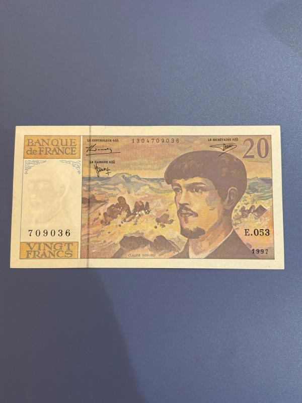 1980-1997 yılları arasında tedavülde olan Fransız Frangı (FRF) serisine ait 20 Frank Claude Debussy kağıt para