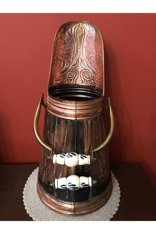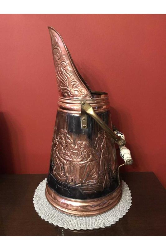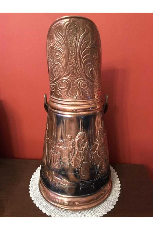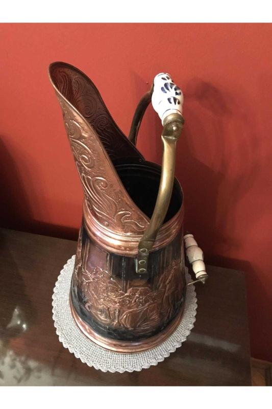 Fransız 51 cm boyunda porselen kulplu üzeri işlemeli bakır kömür kovası, en son 2 ay önce güncellenmiştir.