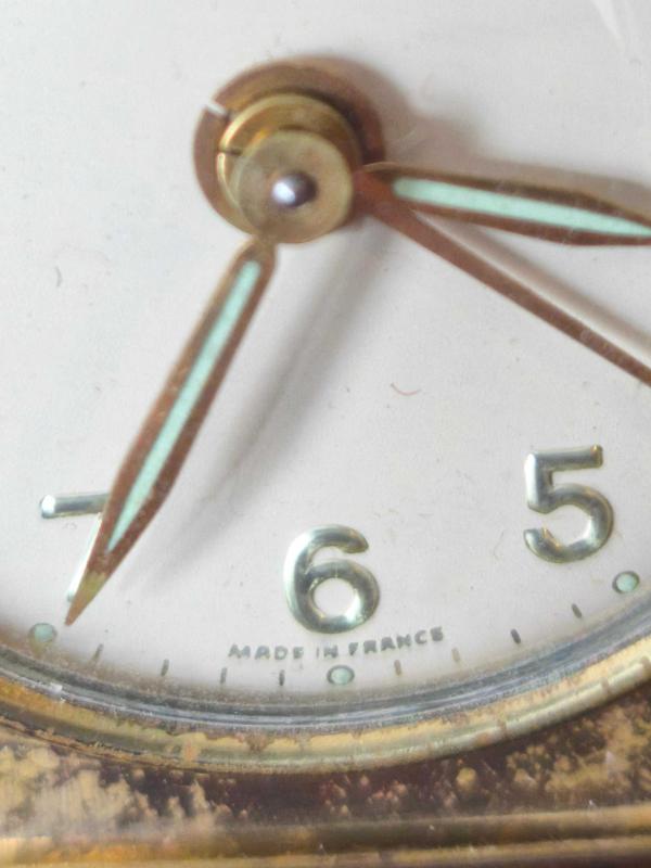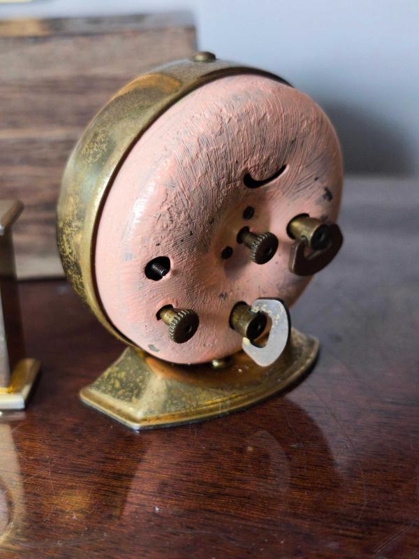 Antika kurmalı alarmlı masa saati. iyi durumda. Arka kısmı boyanmış sonradan kullanıma engel değil. Dönemin en iyi markalarından. Çok şık ve zarif. pirinç kasa