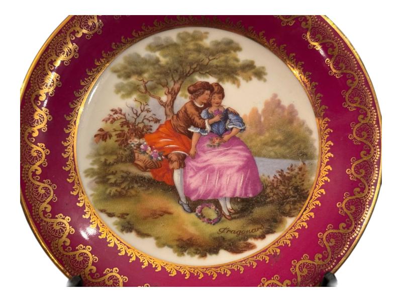 Fransız Limoges 16 cm Çapında Fragonard Temalı Porselen Dekor Tabağı