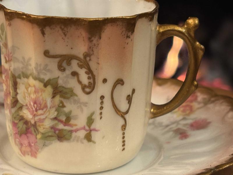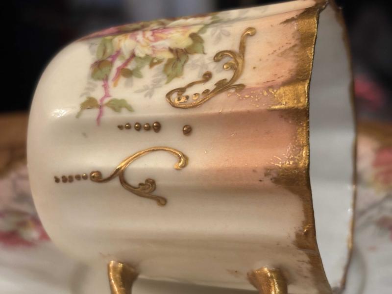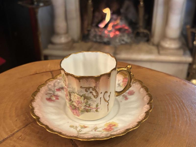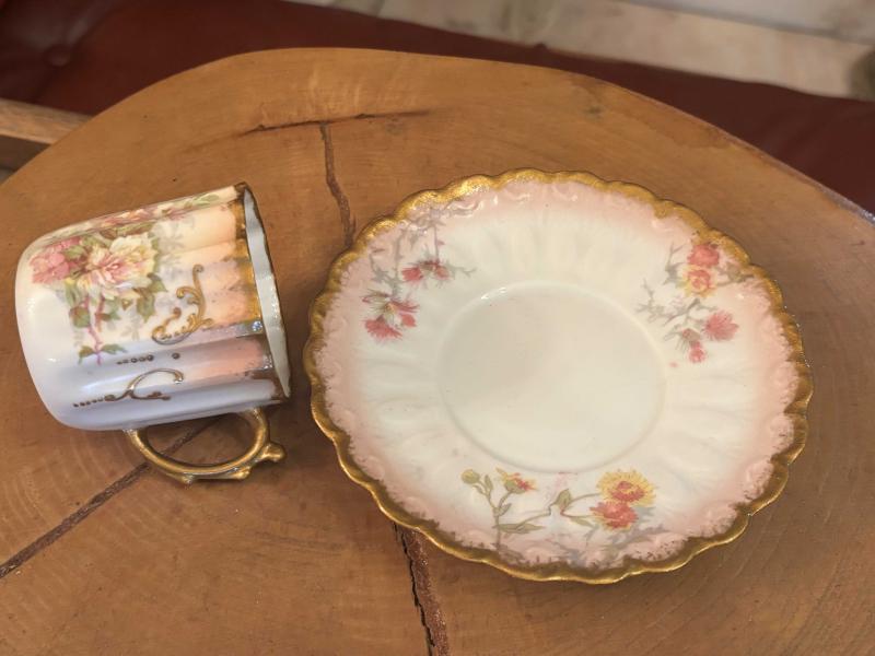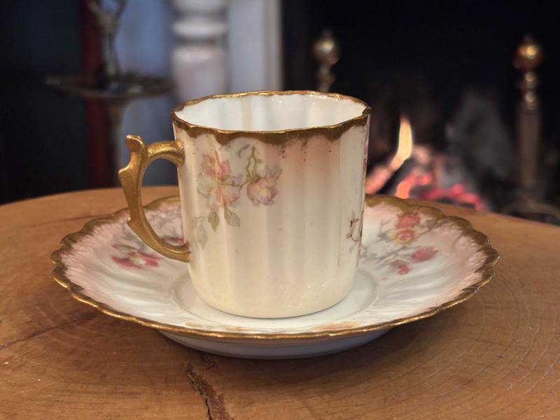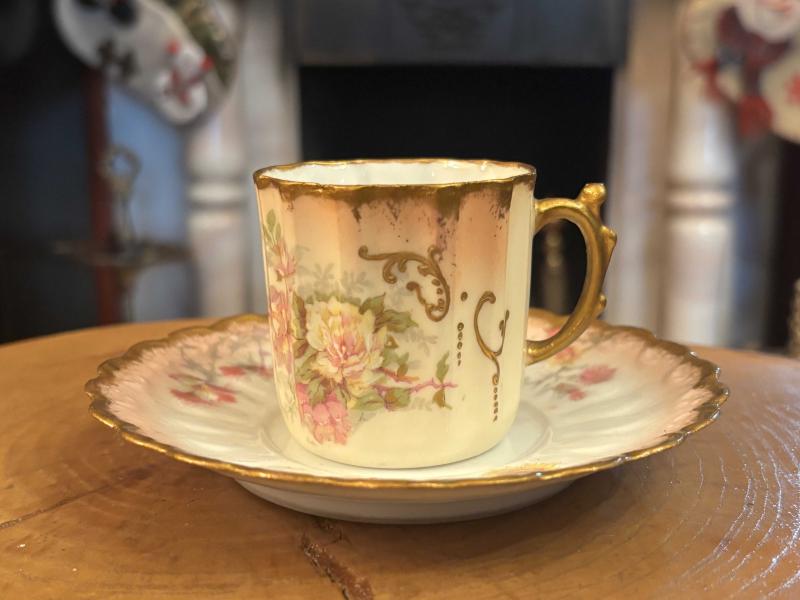 Fransız Limoges el boyama porselen Türk kahvesi boy fincan başlıklı antika/koleksiyon objesi Avrupa menşe’lidir. 1900-1949 arası dönemine aittir.