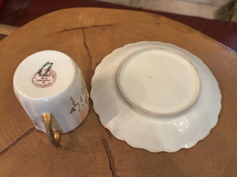Fransız Limoges el boyama porselen Türk kahvesi boy fincan