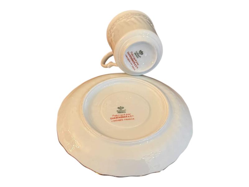 Fransız Limoges gofreli porselen türk kahvesi fincanı