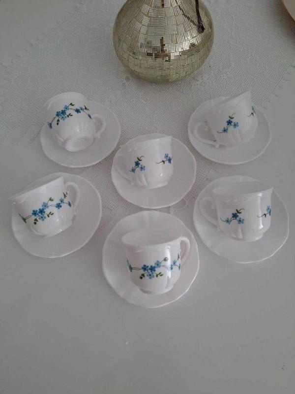 Fransız Arcopal renkli kahve fincanı takımımız vintage bir güzelliğe sahip olup kırılmaya dayanıklıdır ve makinede yıkanmaya uygundur, sofralarınızın sunumlarınızın vazgeçilmez ürünleri haline gelecektir. 6 adet kahve fincanından oluşan takımımız sizin sevdiklerinizle geçireceğiniz güzel günlerin kahve sohbetlerinizin vazgeçilmezi olacaktır. Kahve fincanı çapı : 7 cm Kahve fincanı boyu : 4,5 cm kahve fincanı tabağı çapı : 11,5 cm Mükemmel antika kondisyonunda olan Arcopal kahve fincanımızda hiçbir çatlak, ,kırık, renk kaybı veya tamirat yoktur. Sizlerin de bildiği üzere bazı antika ürünlerde yaşanmışlık izleri olması mümkündür. Fotoğrafları detaylıca incelemenizi tavsiye ederiz. Tüm sorularınız için bizimle iletişime geçebilirsiniz