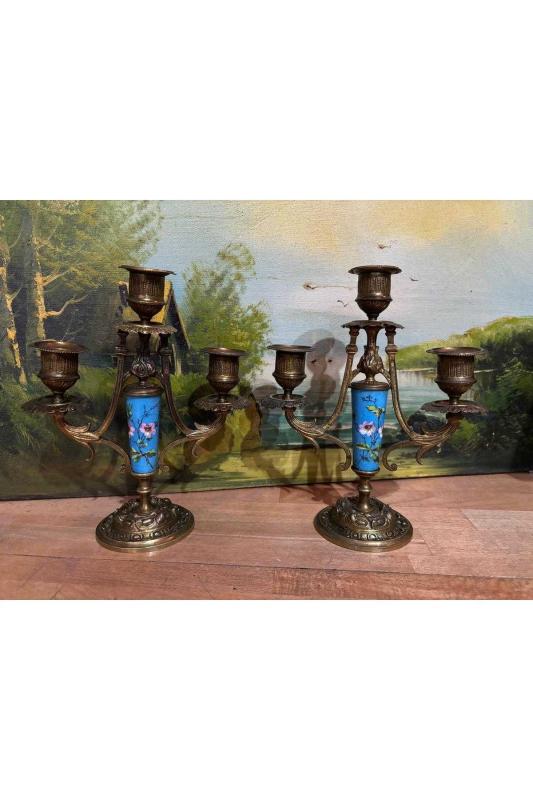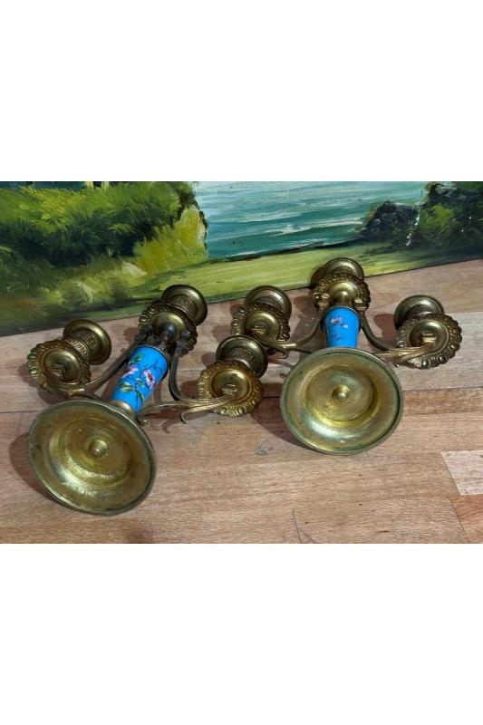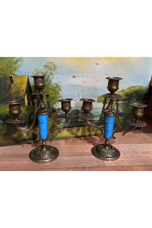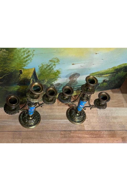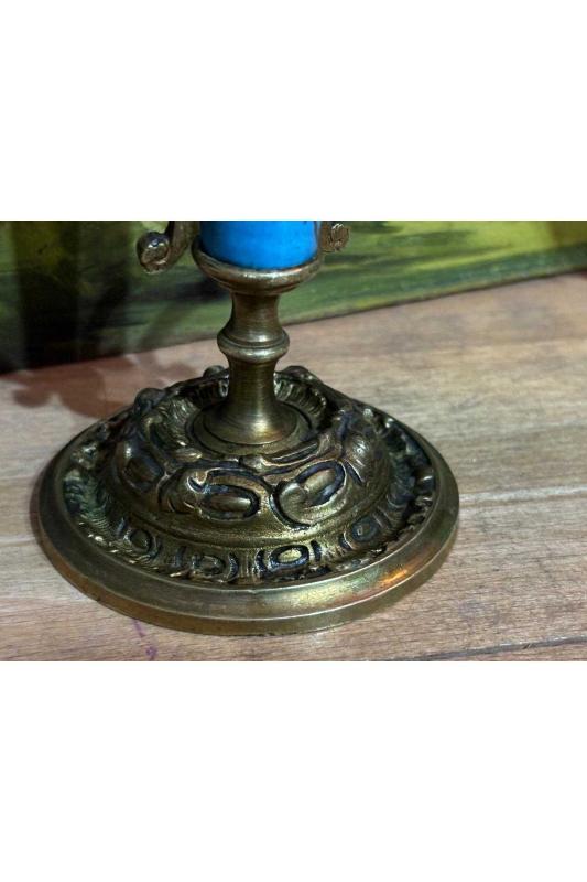 Fransız Sevres bronz işlemeli şamdan çifti 21,5 cm boyunda, 15 gün önce kitantik’te satışa sunulmuştur.