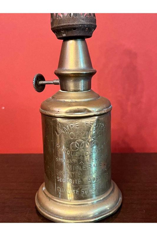 Fransız pirinç gaz lambası 24 cm boyunda başlıklı antika/koleksiyon objesinin menşei belirtilmemiştir. Objenin ait olduğu dönem bilinmeketedir.