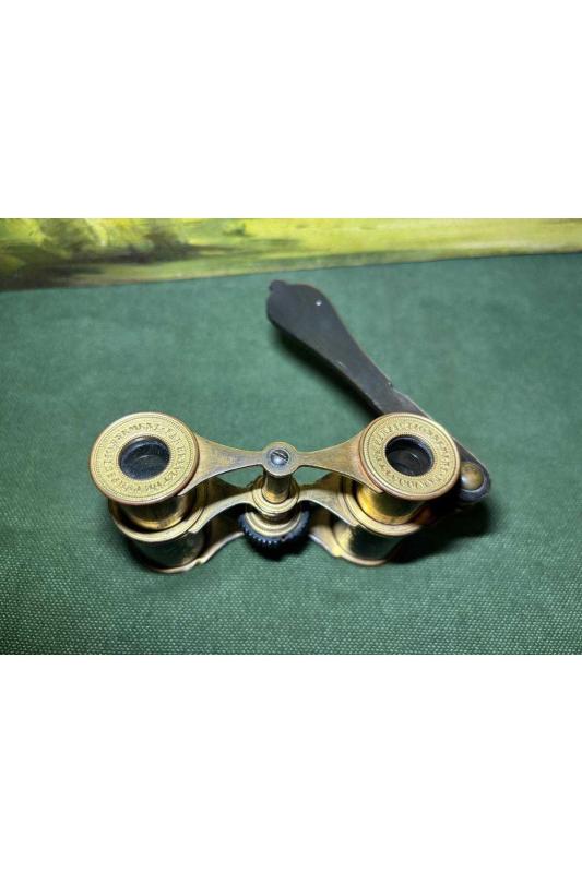 Fransız pirinç opera Dürbünü 9 cm 5,5 cm 2,5 cm ölçülerinde başlıklı antika/koleksiyon objesinin menşei belirtilmemiştir. Objenin ait olduğu dönem bilinmeketedir.
