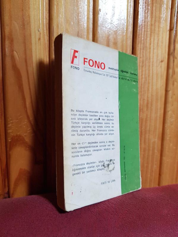 Fransızca Deyimler 1, FONO tarafından kaleme alınmıştır. Kitap 1973 yılında FONO tarafından [İstanbul] yayınlanmıştır. 192 sayfadır. Fransızca Deyimler 1 adlı eser Türkçe dilindedir.
