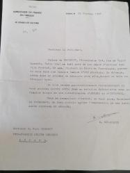 Fransızca Mektup: Fransa'nın Türkiye Büyükelçiliği'nin Türk-Fransız Kültür Derneği Başkanı, Şair-Yazar Munis Faik Ozansoy'a gönderdiği 22 Şubat 1965 tarihli, antetli mektup. M. Delacquis'den imzalı.